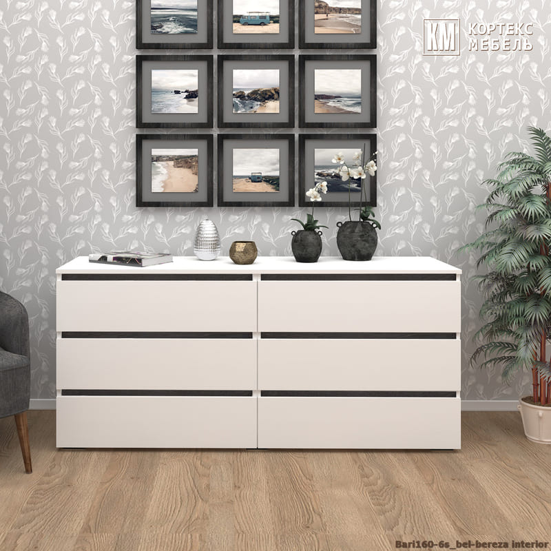 Комод «Бари 160-6ш» (белый текстурный - берёза)