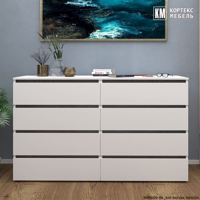 Комод «Бари 160-8ш» (белый текстурный - берёза)