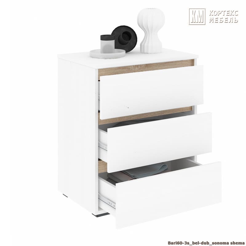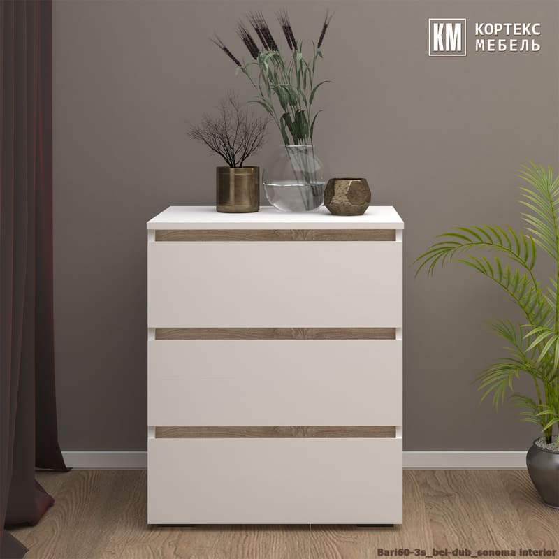 Комод «Бари 60-3ш» (белый текстурный - дуб сонома)