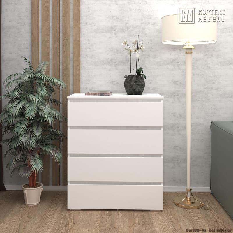 Комод «Бари 80-4ш» (белый текстурный)
