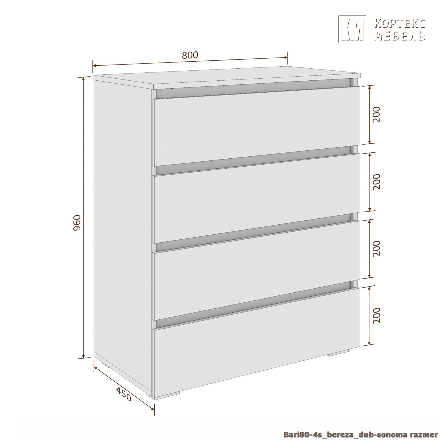 Комод «Рио 90-4ш» дуб сонома, Гавана