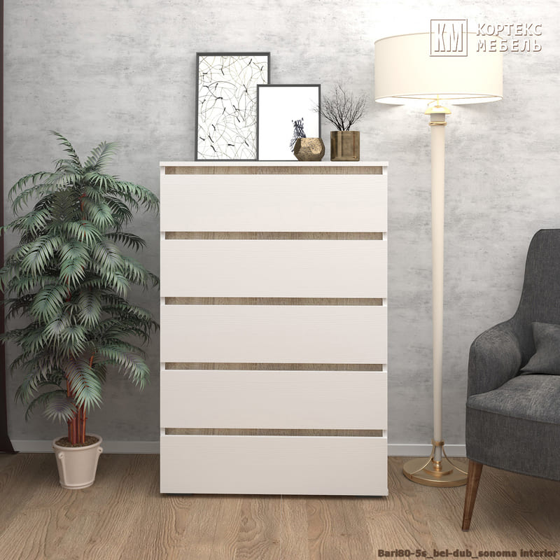Комод «Бари 80-5ш» (белый текстурный - дуб сонома)