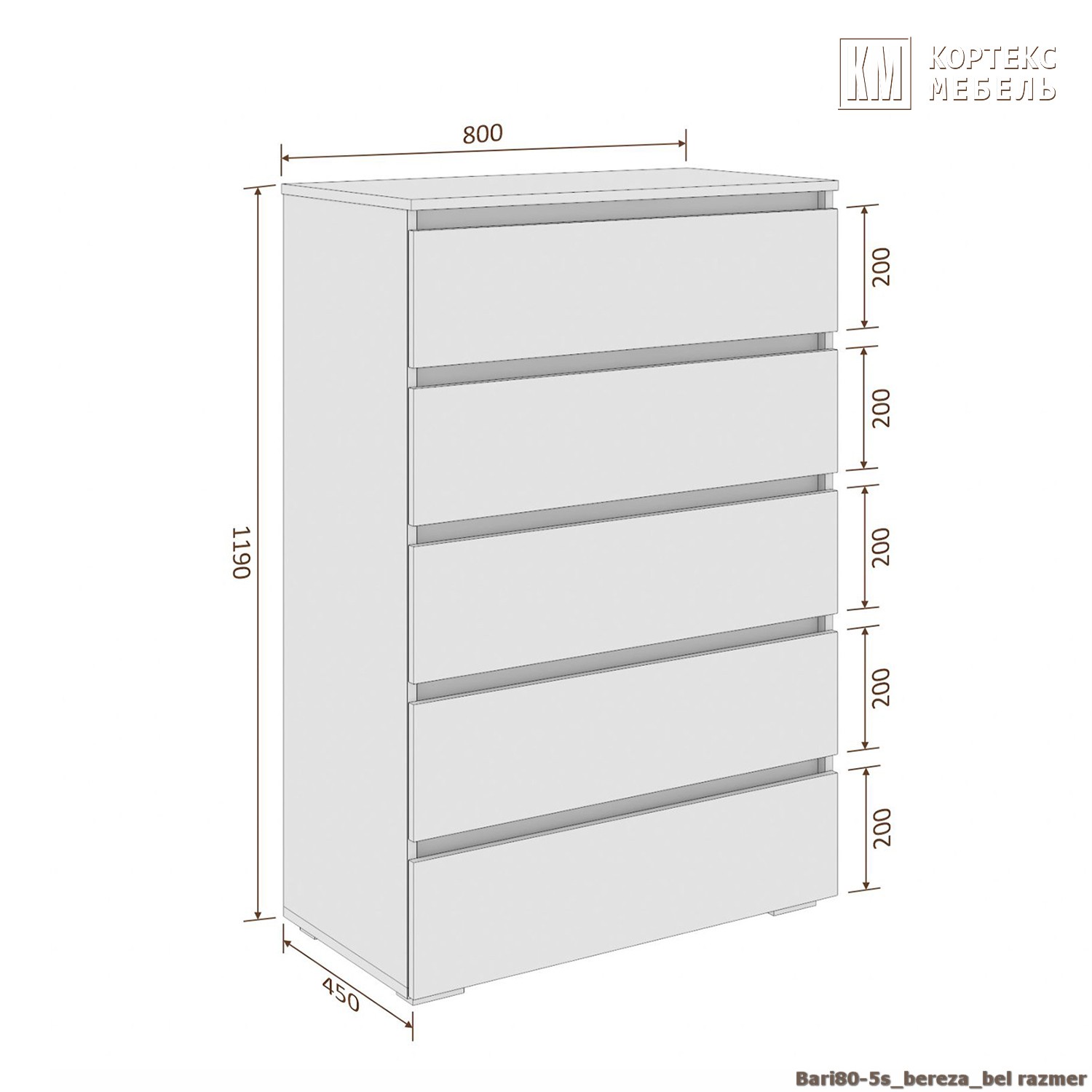 Глубина комода 45 см. делает его удобным для использования даже в небольших жилых комнатах (спальне, детской, гостиной или прихожей).