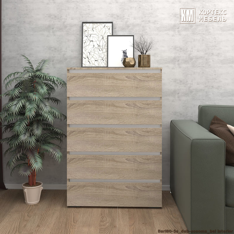 Комод «Бари 80-5ш» (дуб сонома - белый текстурный)