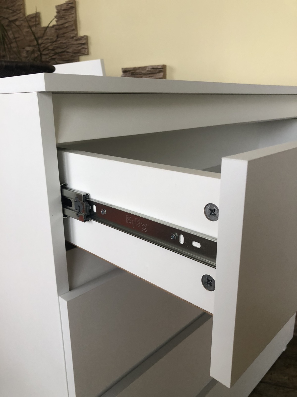Габариты комода: 110х77х45 см. Матовые фасады без ручек.