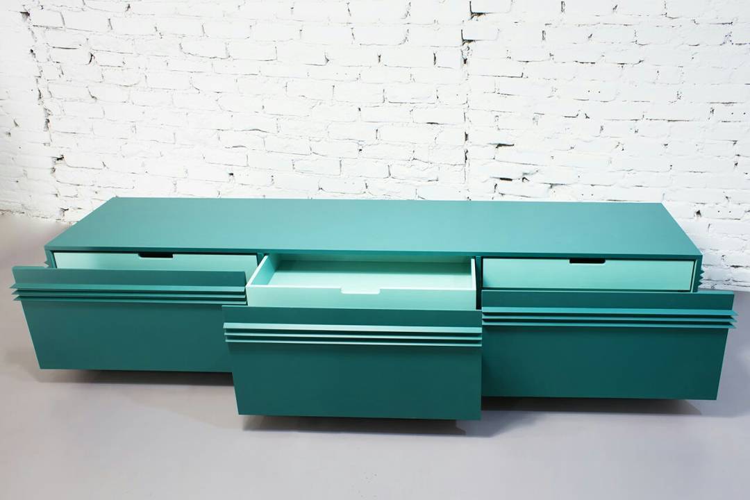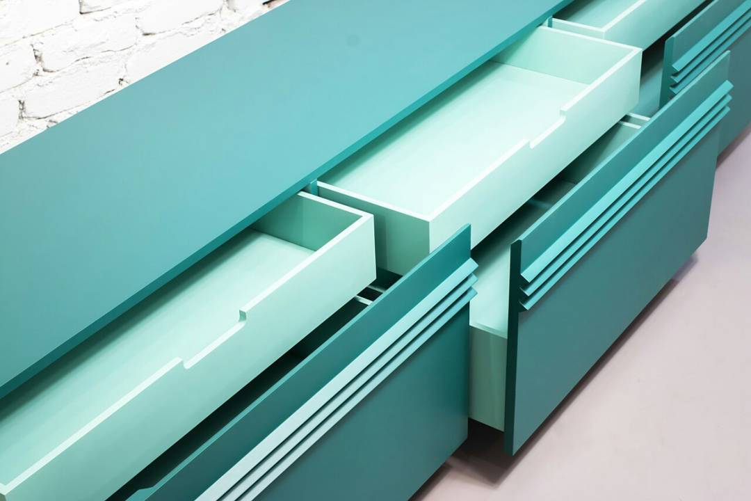 Оригинальный комод с тремя выдвижными ящиками в наличии от производителя из тематической серии криптомебели для тех, кто понимает толк в майнинге и блокчейне. Глянцевый лазурный корпус с тремя рельефными выступами скрывает вместительное функциональное наполнение с тремя дополнительными компактными шуфлядками. Основание комода эффектно заужено.
