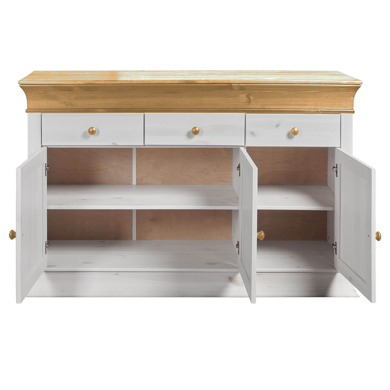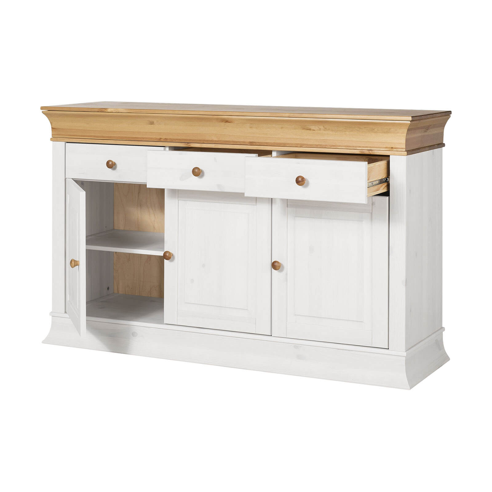 Комод буфета Бостон - это стильная классика в современном решении. Под столешницей находятся три выдвижных ящика, а ниже - 3 отделения с полками за навесными дверями. Изготовлен из натуральных материалов, которые долгое время не потеряют своих характерных свойств.