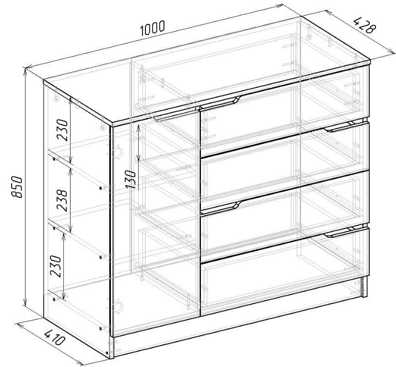 Размер (Ш x Г x В): 1000 x 428 х 850 мм