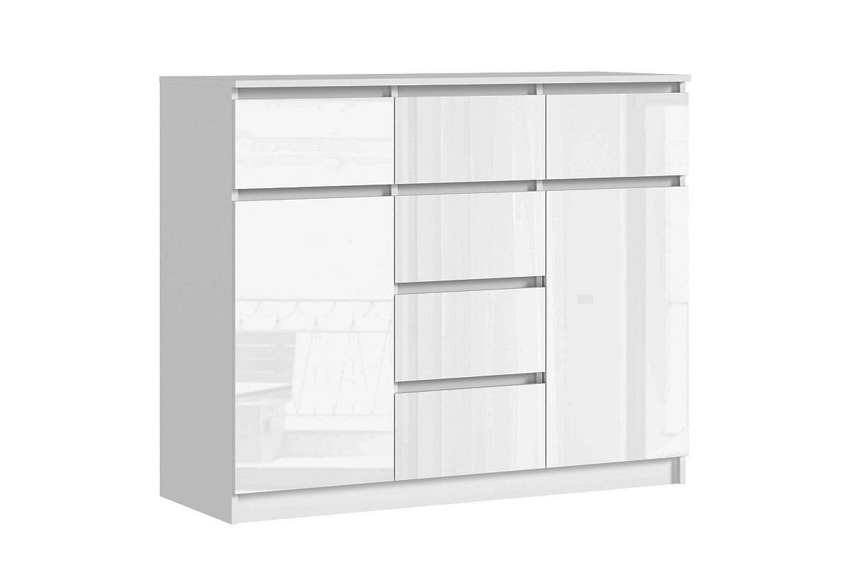 Комод «Челси» 2 двери 6 ящиков (белый - белый глянец)