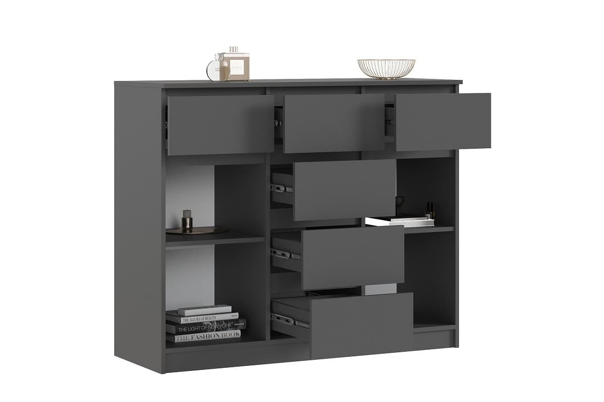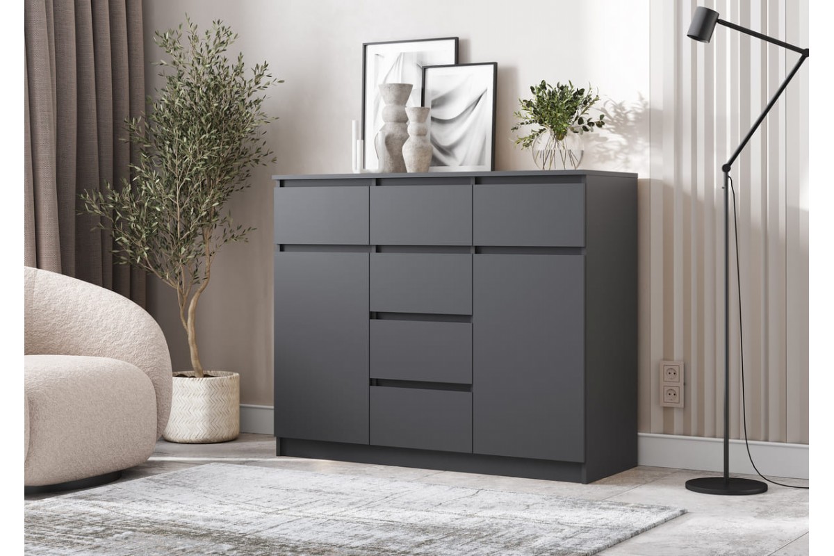 Комод «Челси» 2 двери 6 ящиков (графит - графит)