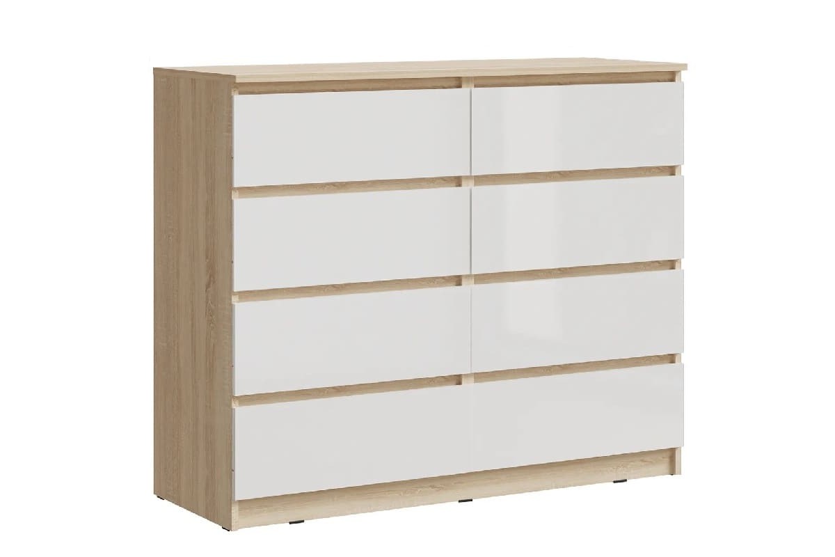 Комод «Челси» 8 ящиков (дуб сонома - белый глянец)