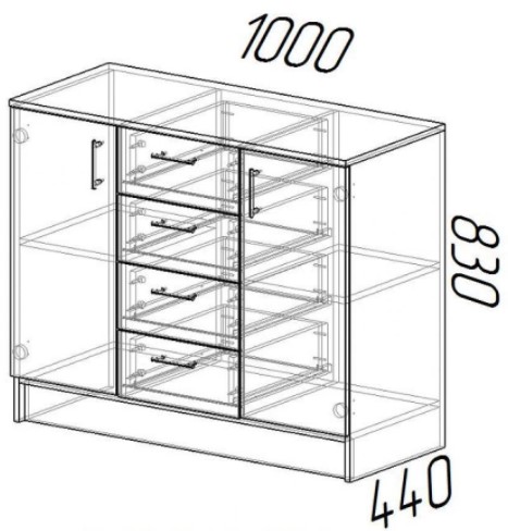 Материал: каркас - ЛДСП; фасады - ЛДСП задняя стенка и дно ящиков - ДВП кромка - ПВХ в цвет 0,4 мм и 2 мм