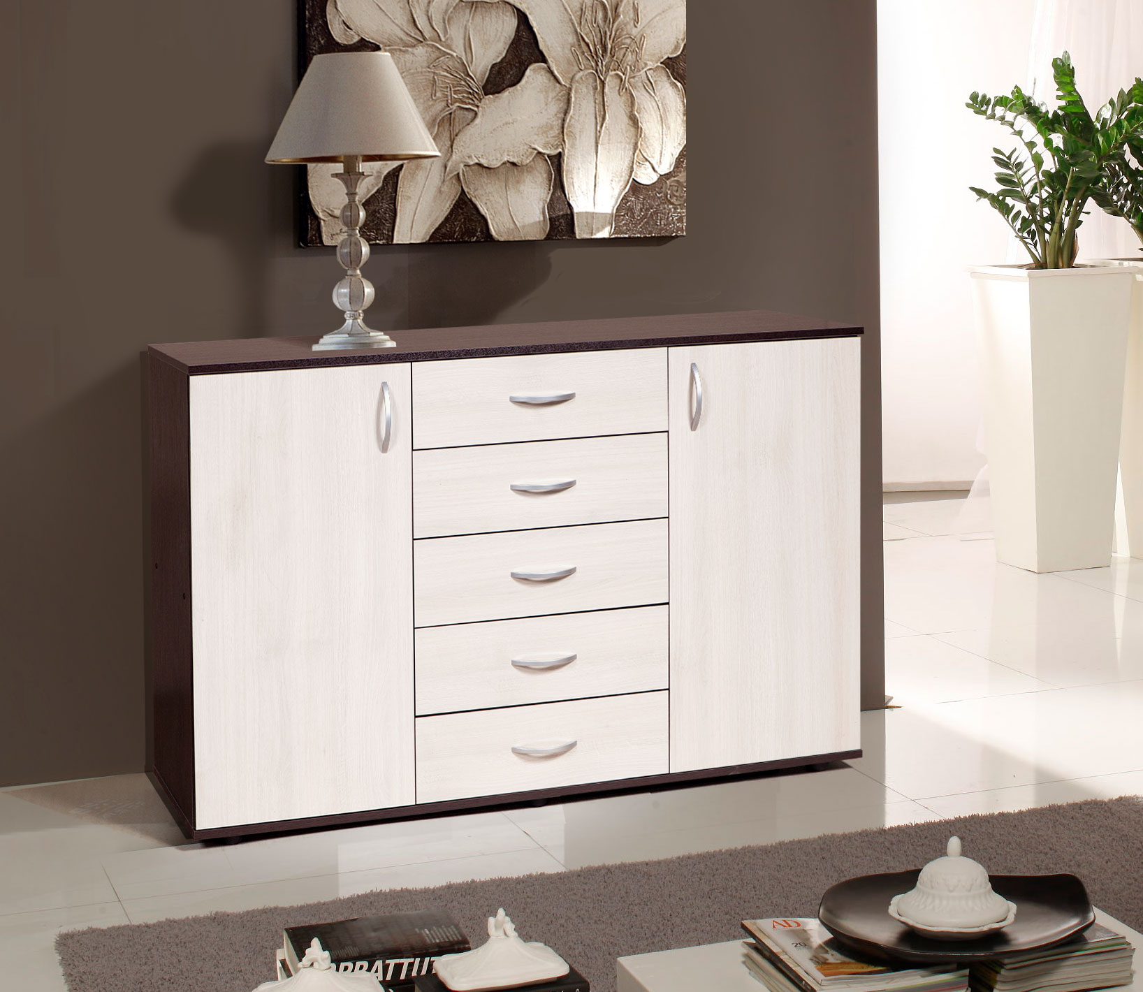 В комоде много места для вещей, одежды, документов, посуды и личных вещей. Сверху на комоде удобно разместятся ночничок, любимый цветок, фото в рамках или даже телевизор.