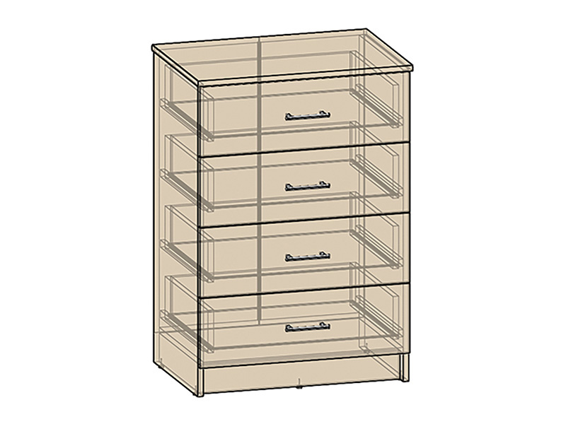 Комод для хранения одежды с четырьмя выдвижными ящиками.