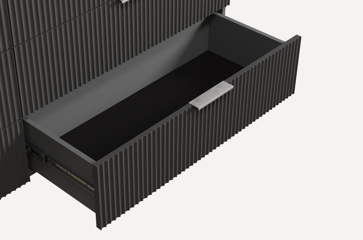 На фасадах выполнена фрезеровка под ручки. Петли четырехшарнирные с доводчиком.