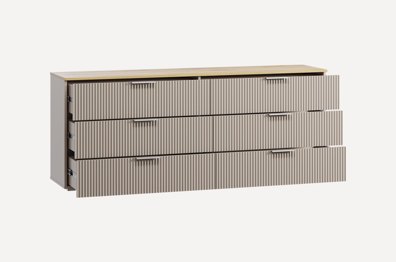 Размер: 160x77x48 см. Шесть плавно выдвижных ящика.