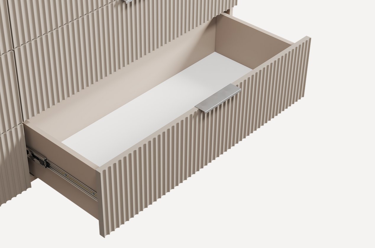 Размер: 160x55x48 см. Четыре плавно выдвижных ящика.