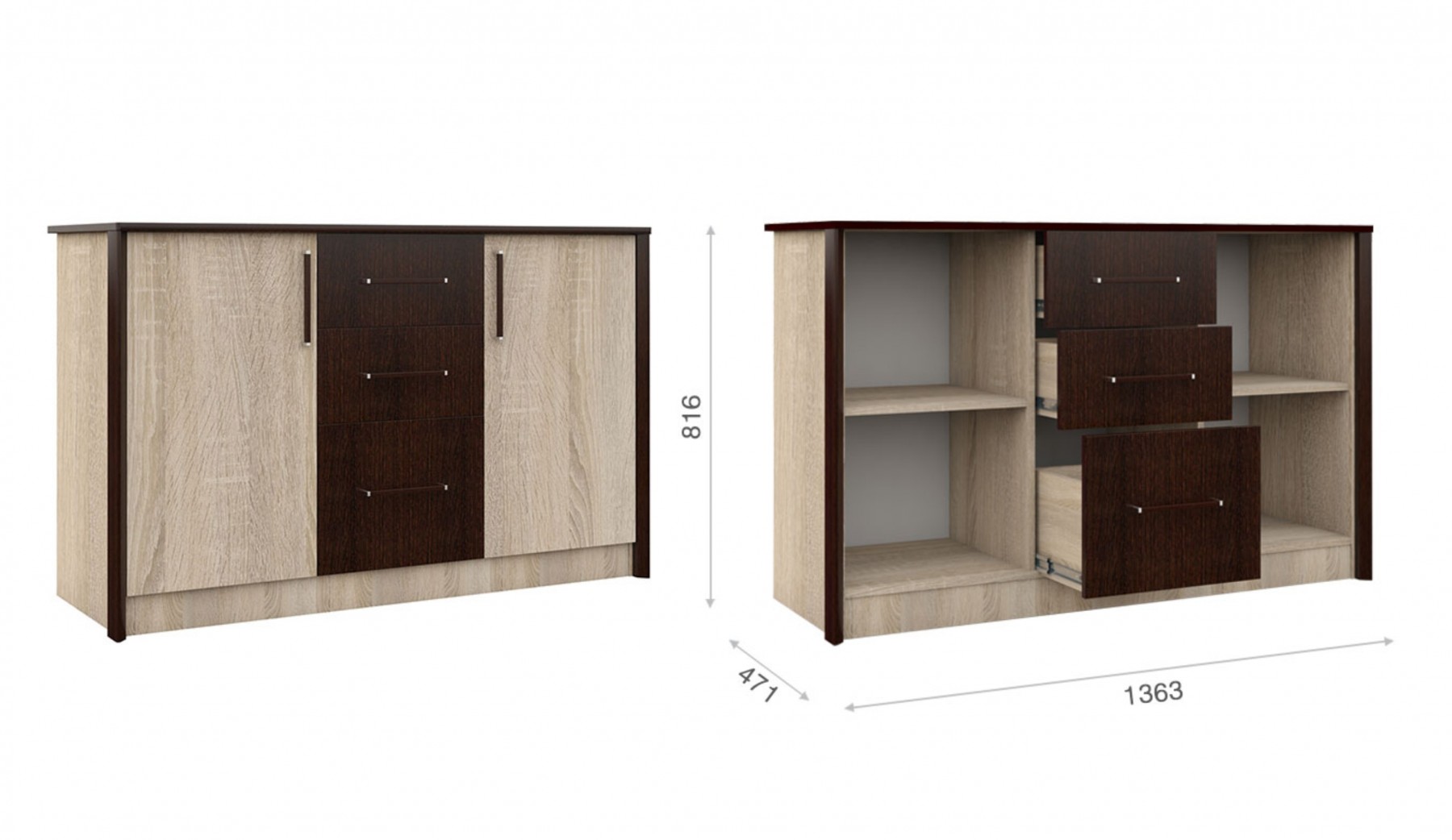 код 141487Центральную часть занимают три ящика с направляющими полного выдвижения.