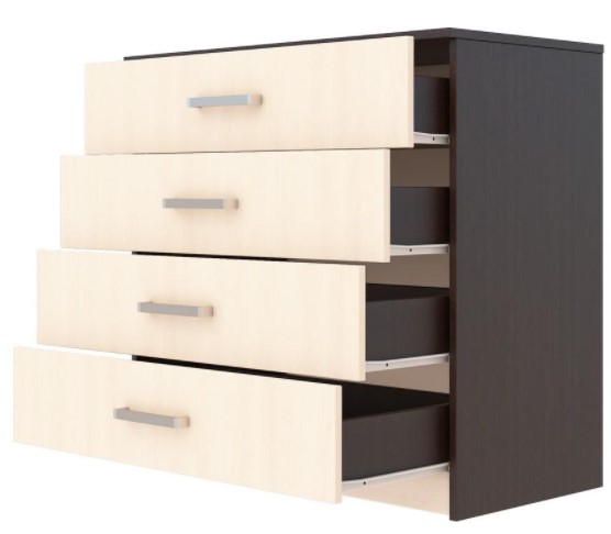 Материал: каркас - ЛДСП; фасады - МДФ ламинированная задняя стенка и дно ящиков - ДВП кромка - ПВХ в цвет 0,4 мм направляющие - роликовые