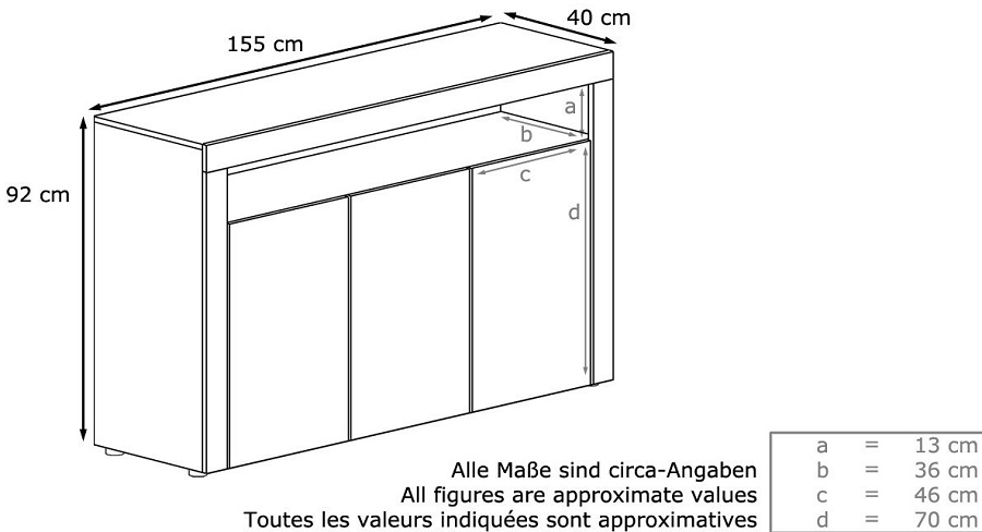 Размер: 160x77x48 см. Шесть плавно выдвижных ящика.