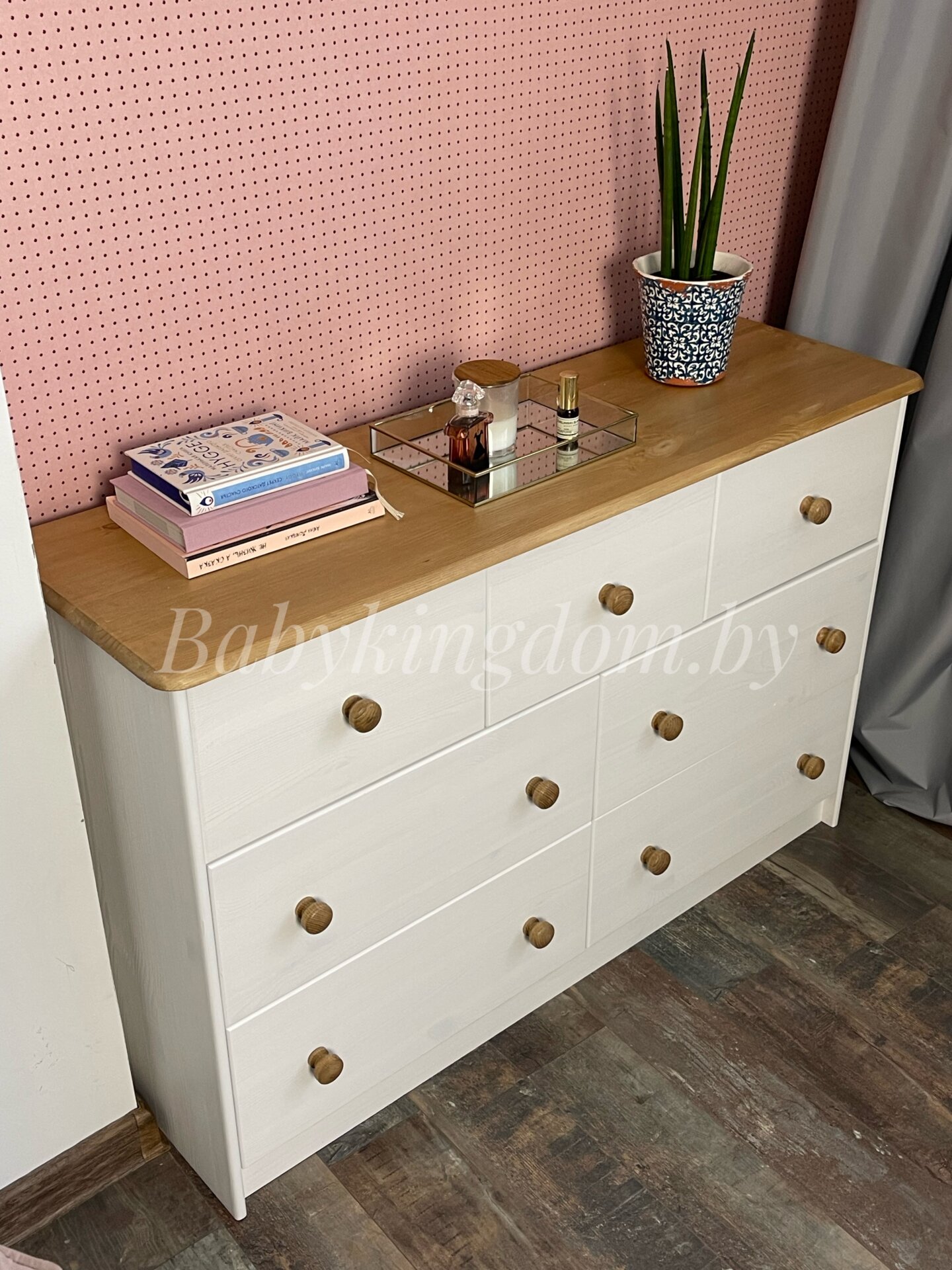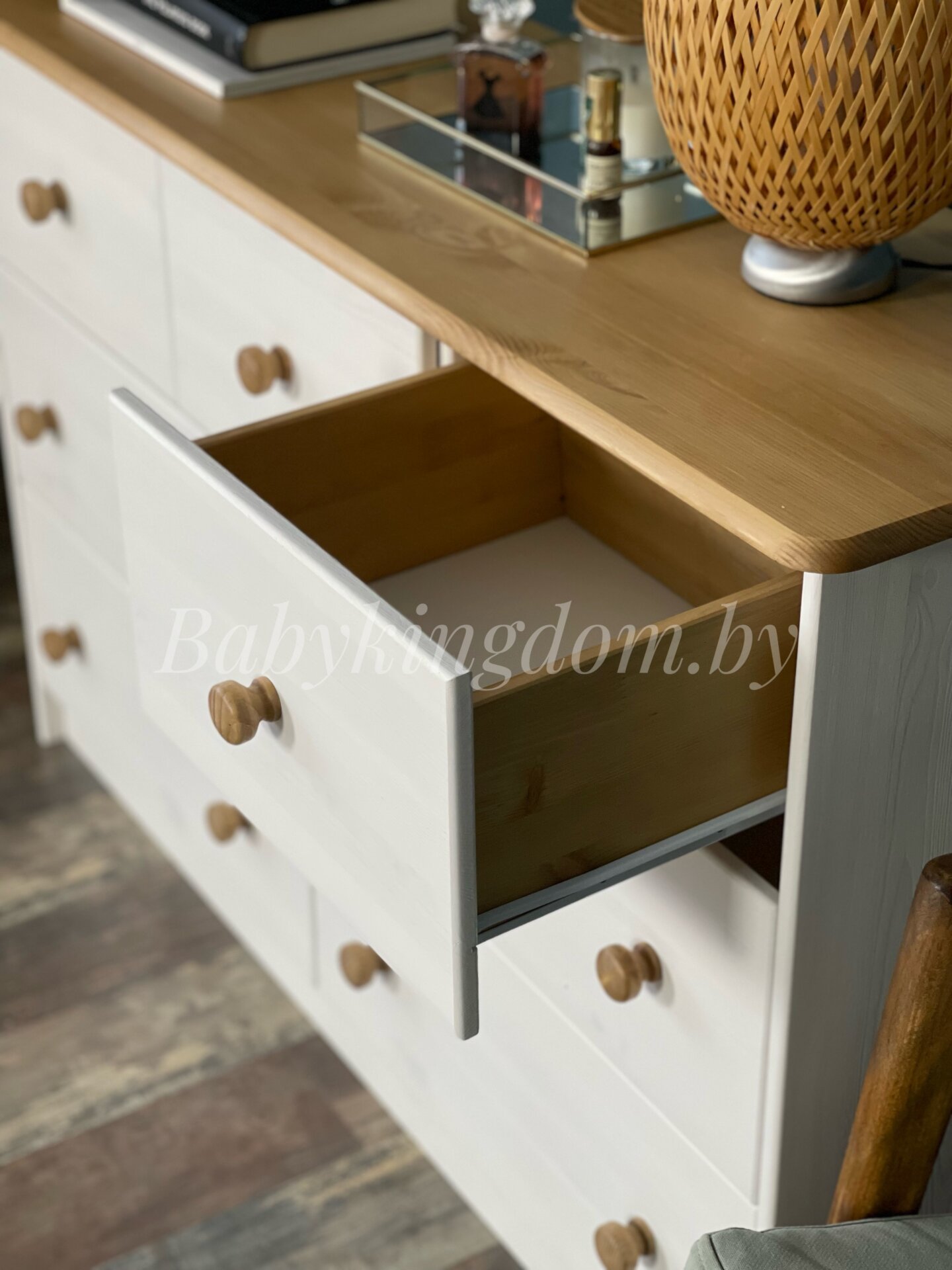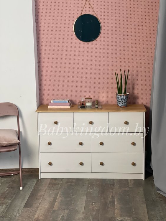 Комод из массива «Хаба 7 ящиков» (белый воск/антик)