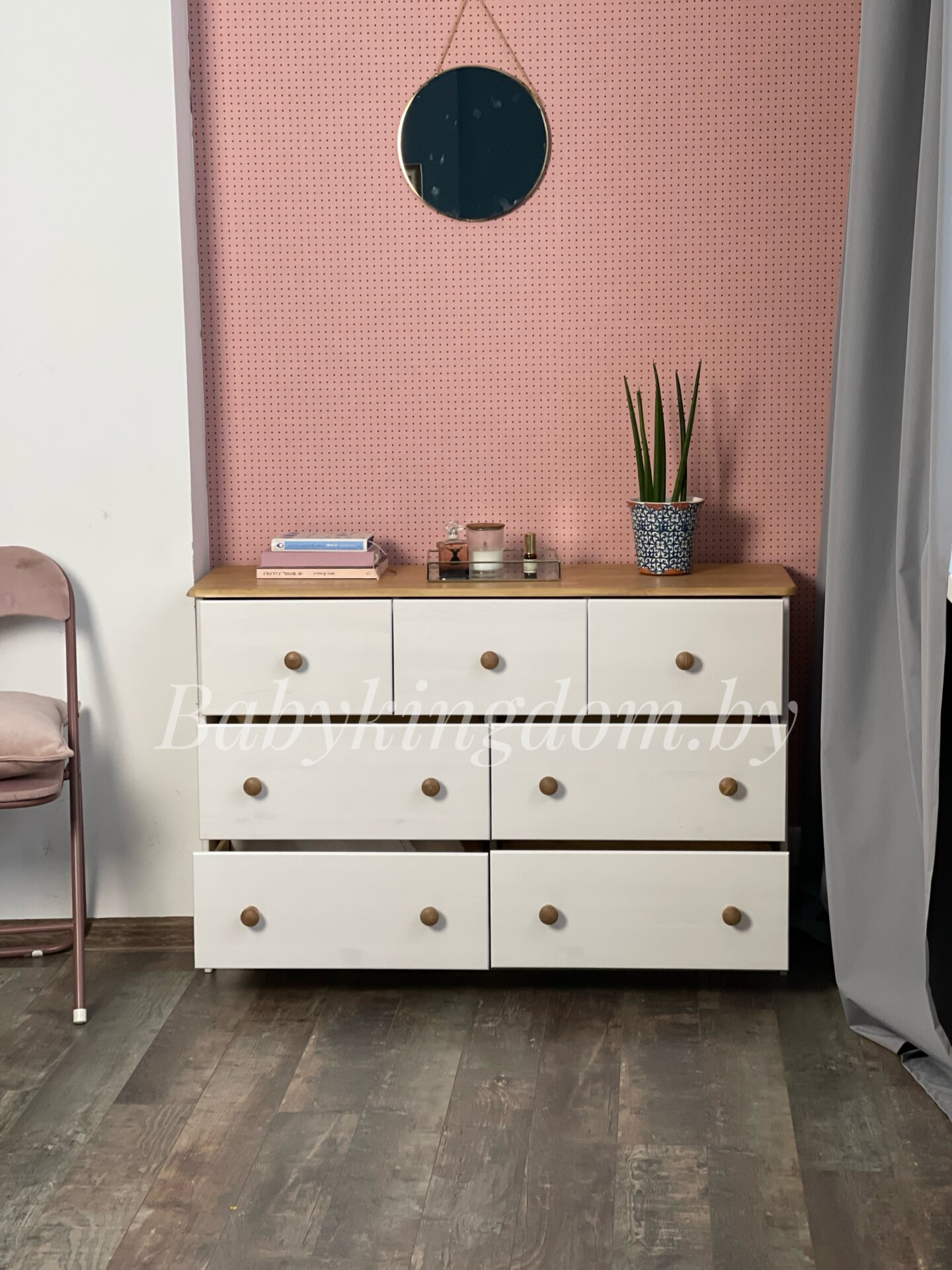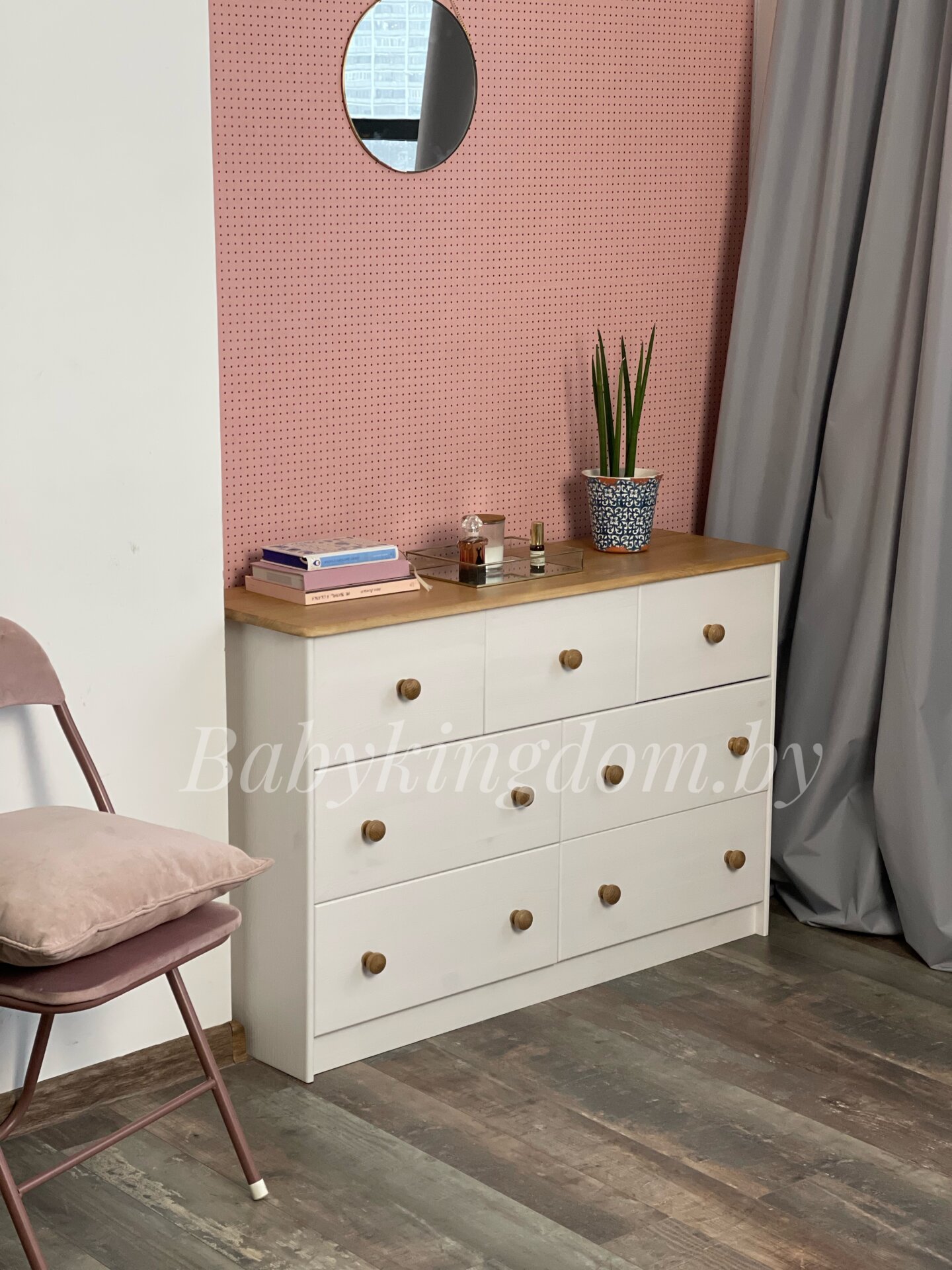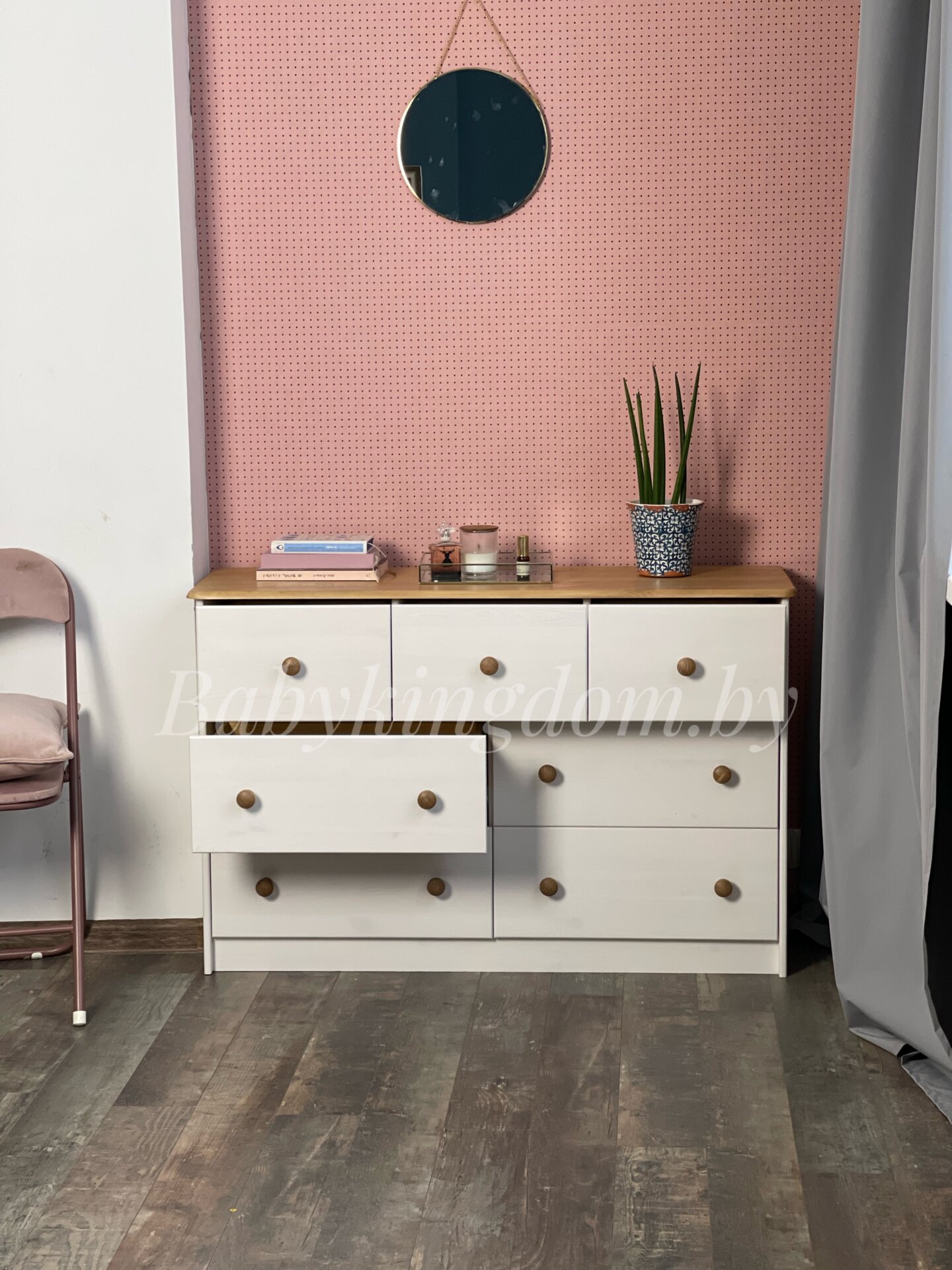 Комод из массива «Хаба 7 ящиков» (белый воск/антик)