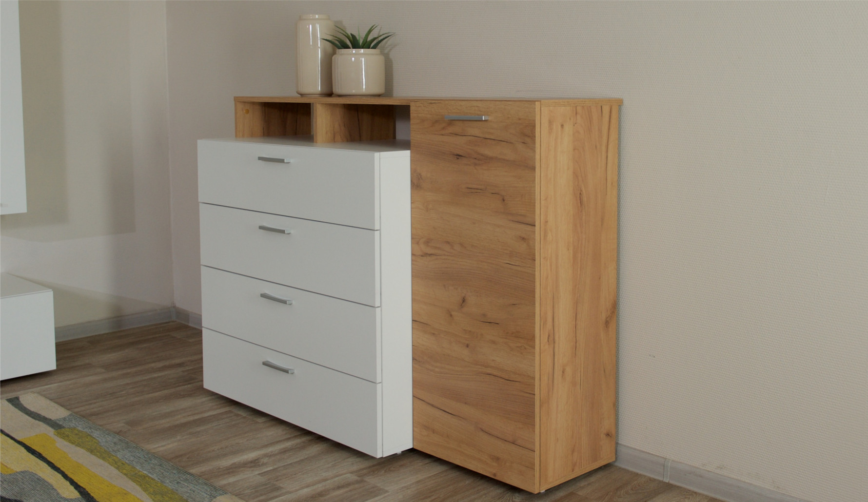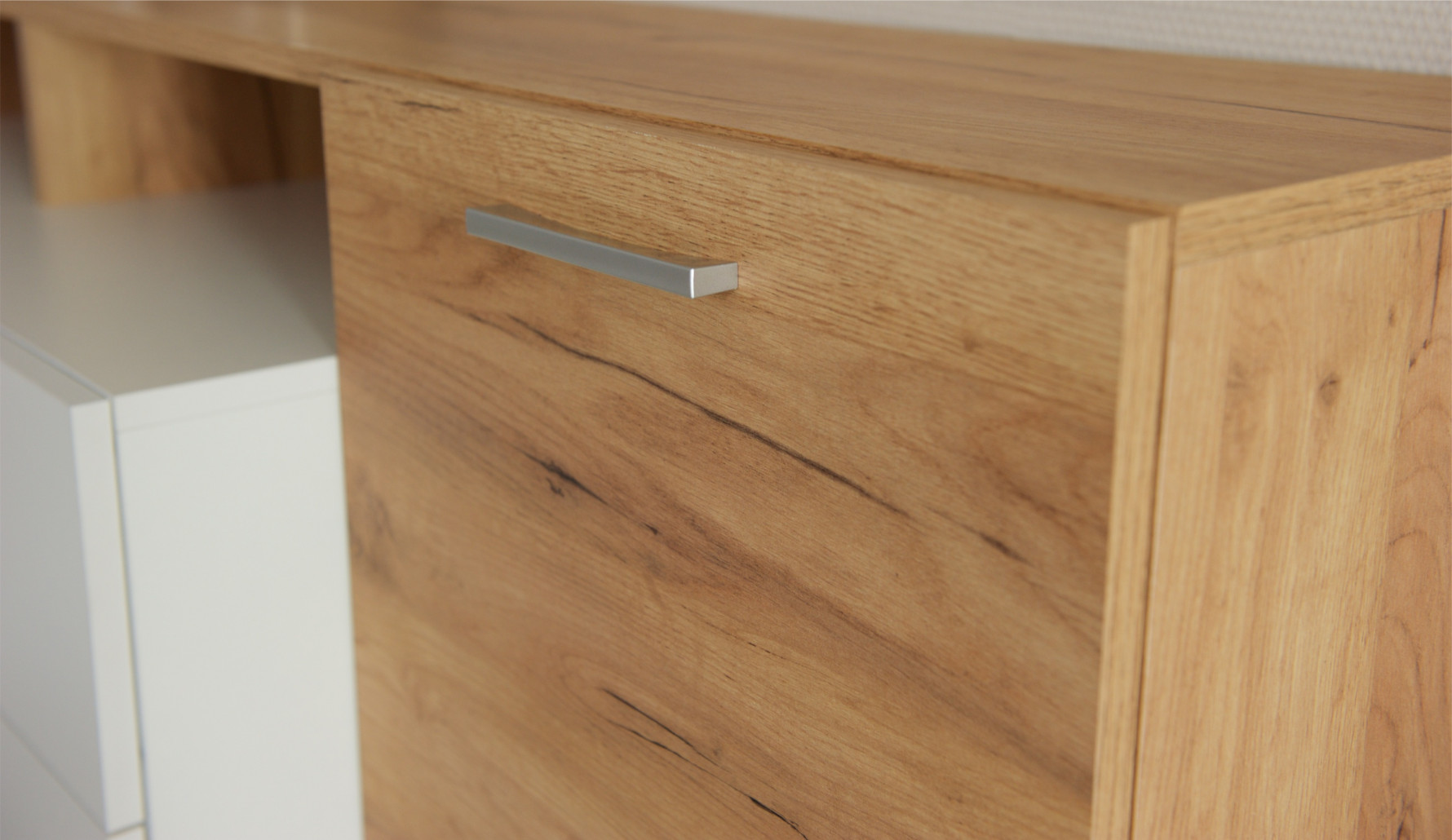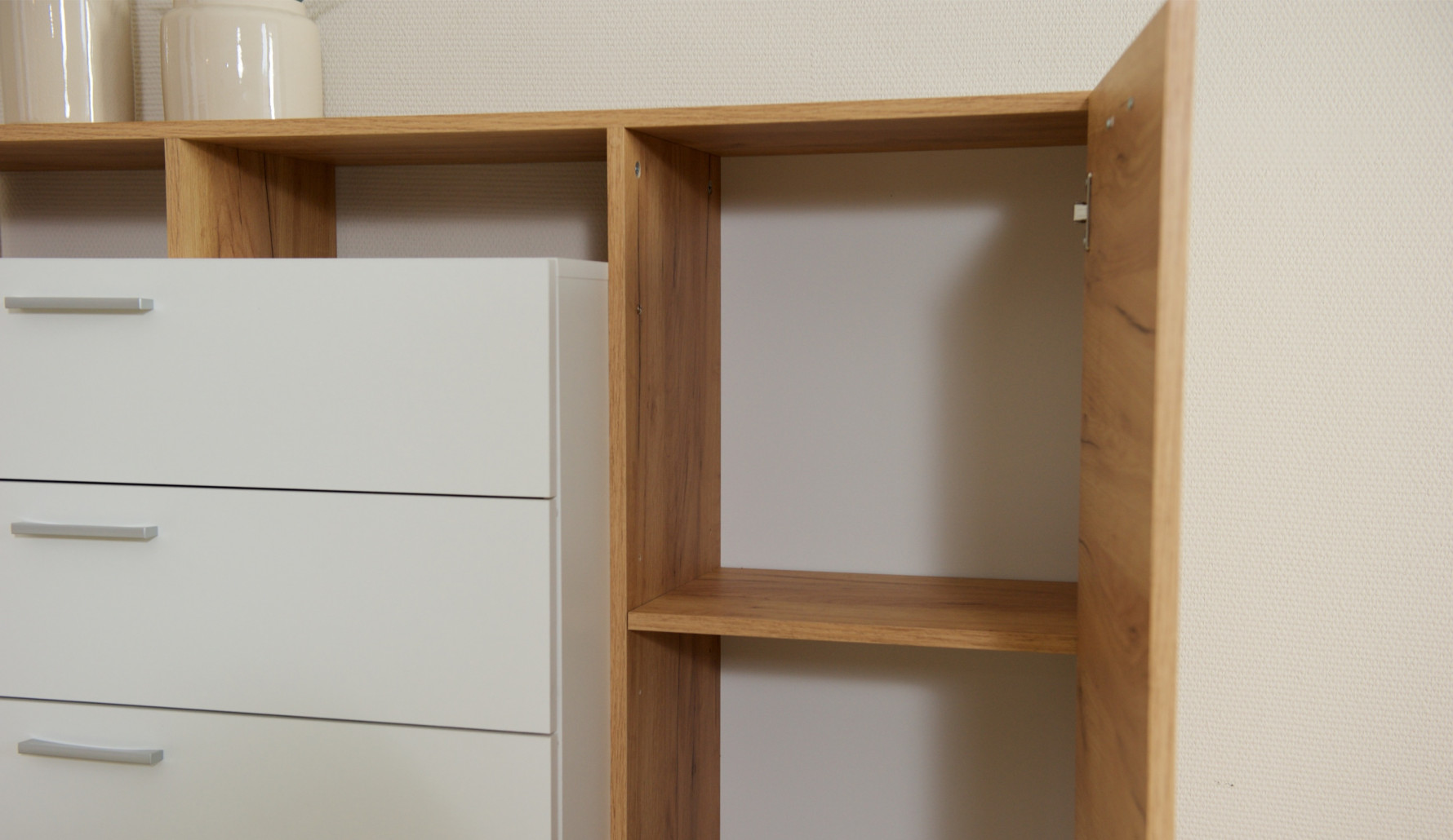 Открытая ниша, 2 распашных отделения, 2 выдвижных ящика.
