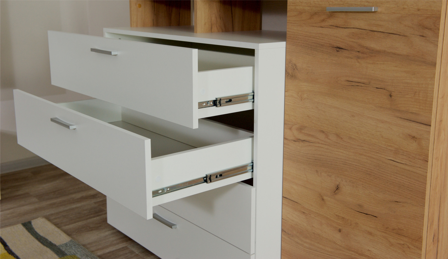Вместительное место для хранения небольших вещей с ящиками полного выдвижения.