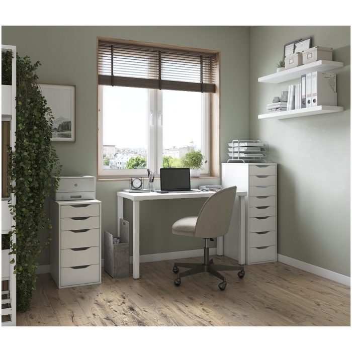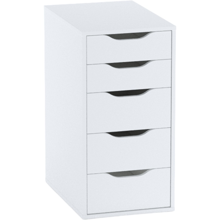 Технология пигмент. • Лаконичный, простой стиль. • Выступает как самостоятельный предмет интерьера, так и в качестве опоры для столешницы.. • Задняя стенка обработана, можно использовать отдельно стоящим в комнате, а не только около стены. • Пять плавно выдвижных ящиков, . • Вырезные ручки придают характер элементам ящиков, облегчают захват и открывание ящиков. • Легко комбинируется с другими предметами интерьера. • Подробная инструкция, легкая сборка. • Экологичность и высокое качество окраски (экологически безопасные материалы).