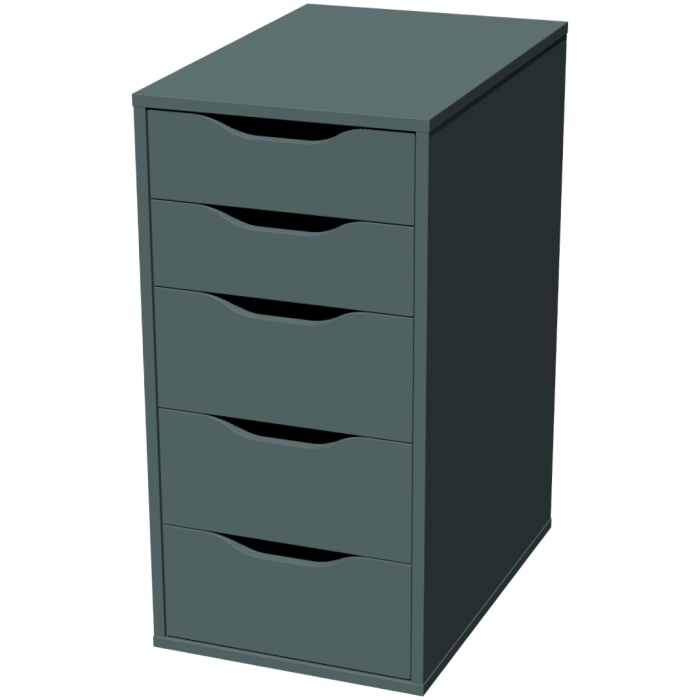 Технология пигмент. • Лаконичный, простой стиль. • Выступает как самостоятельный предмет интерьера, так и в качестве опоры для столешницы.. • Задняя стенка обработана, можно использовать отдельно стоящим в комнате, а не только около стены. • Пять плавно выдвижных ящиков, . • Вырезные ручки придают характер элементам ящиков, облегчают захват и открывание ящиков. • Легко комбинируется с другими предметами интерьера. • Подробная инструкция, легкая сборка. • Экологичность и высокое качество окраски (экологически безопасные материалы).
