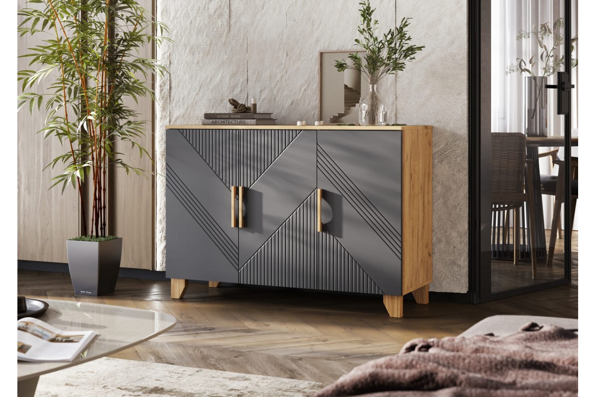 Комод «Ирис» (1200) (Браш Графит - Дуб Крафт)