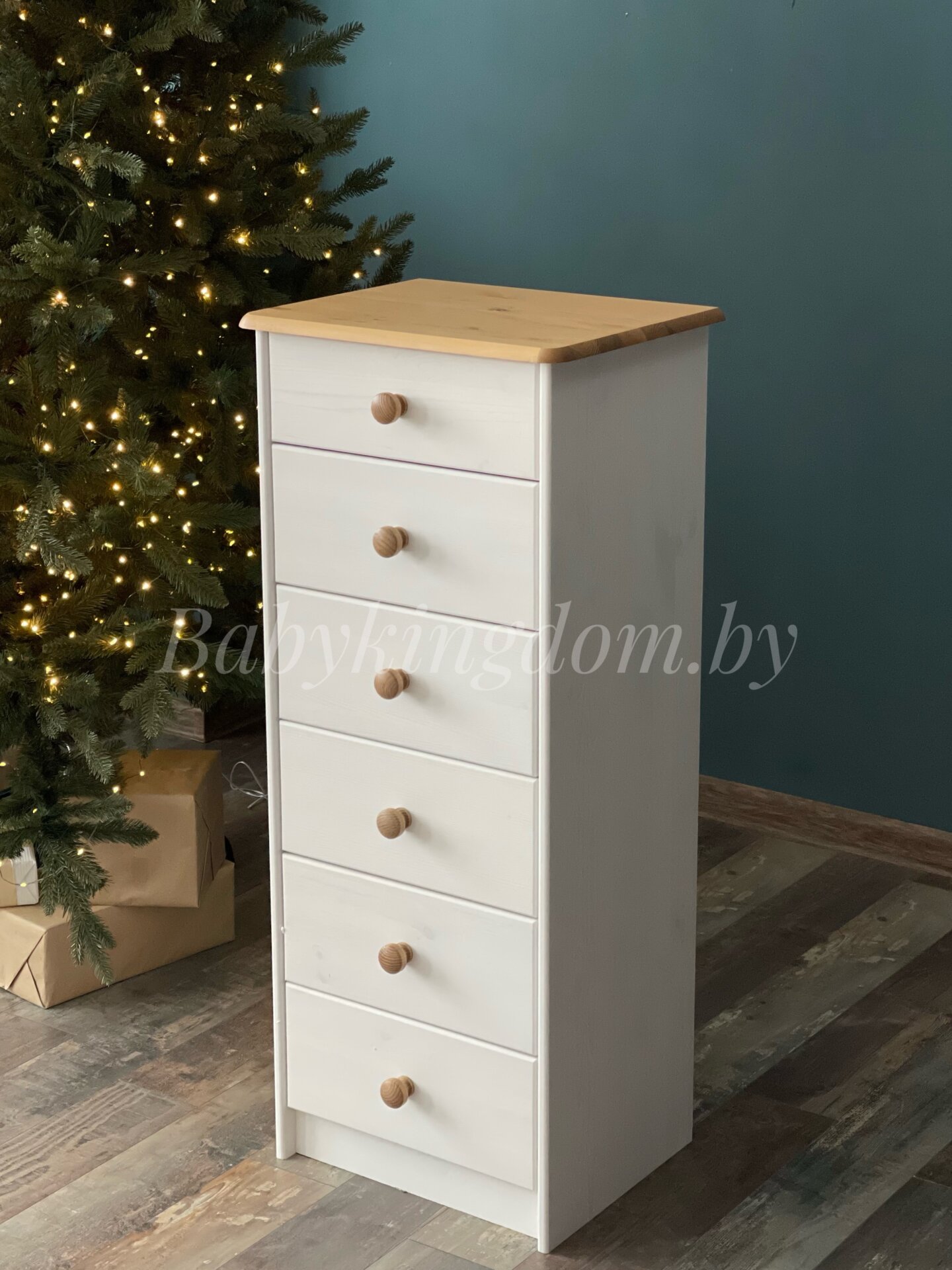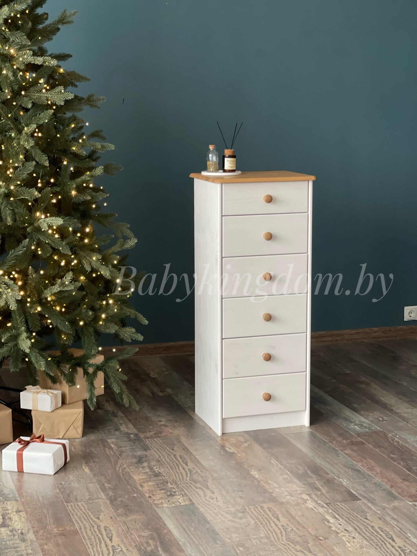 Комод из массива «2153 Ром 6 ящиков» (белый воск/антик)