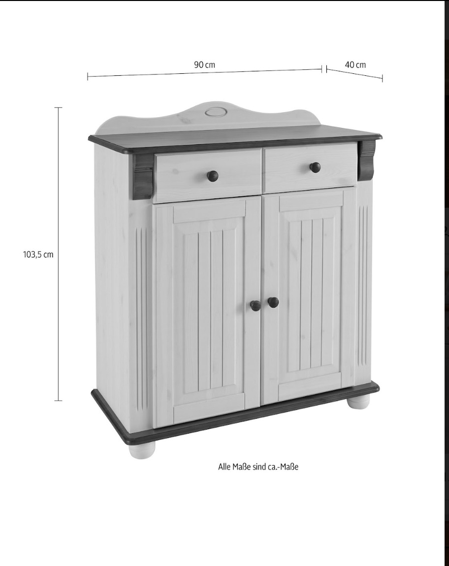Размеры (ШхГхВ): 118х37х100 см. Изготовлен из 100% массива сосны и покрыт белым воском.