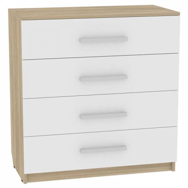 Небольшой комод в оттенке светлого дуба с белыми вставками на интегрированных ручках.