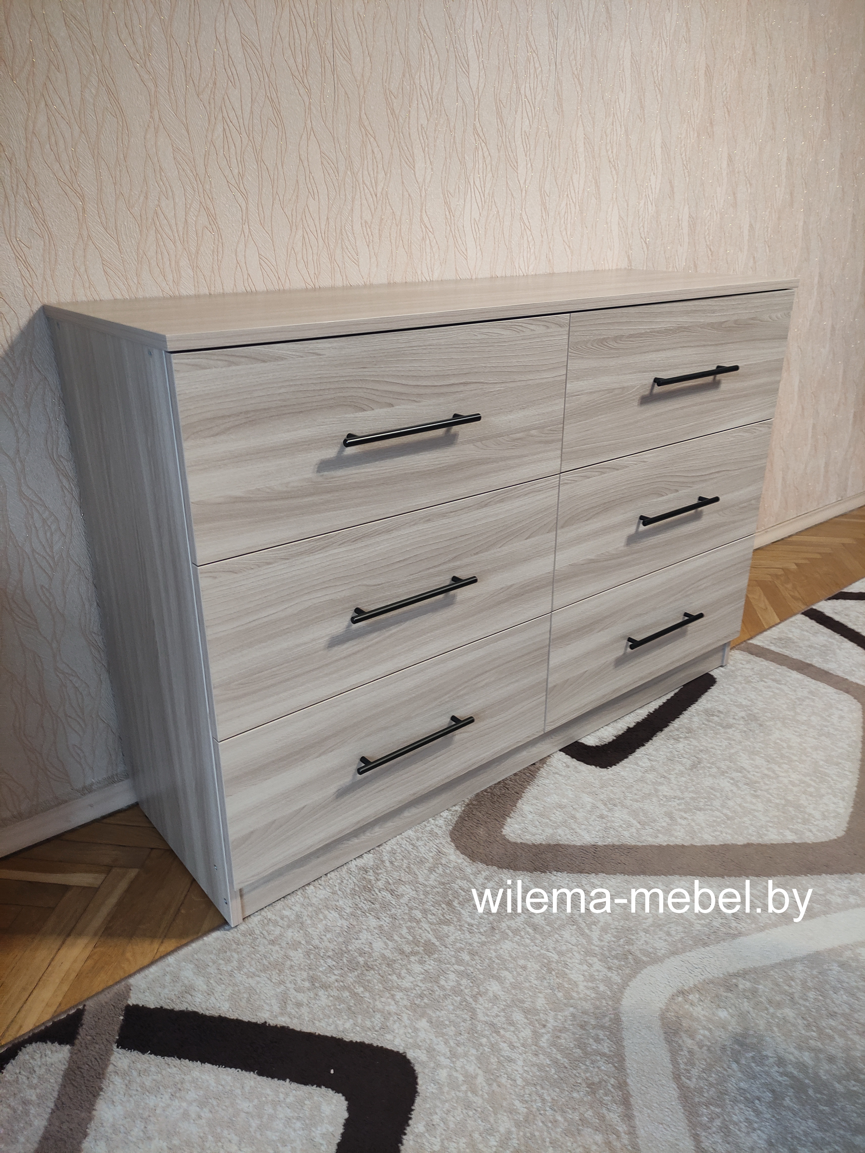 Размер: 160x55x48 см. Четыре плавно выдвижных ящика.