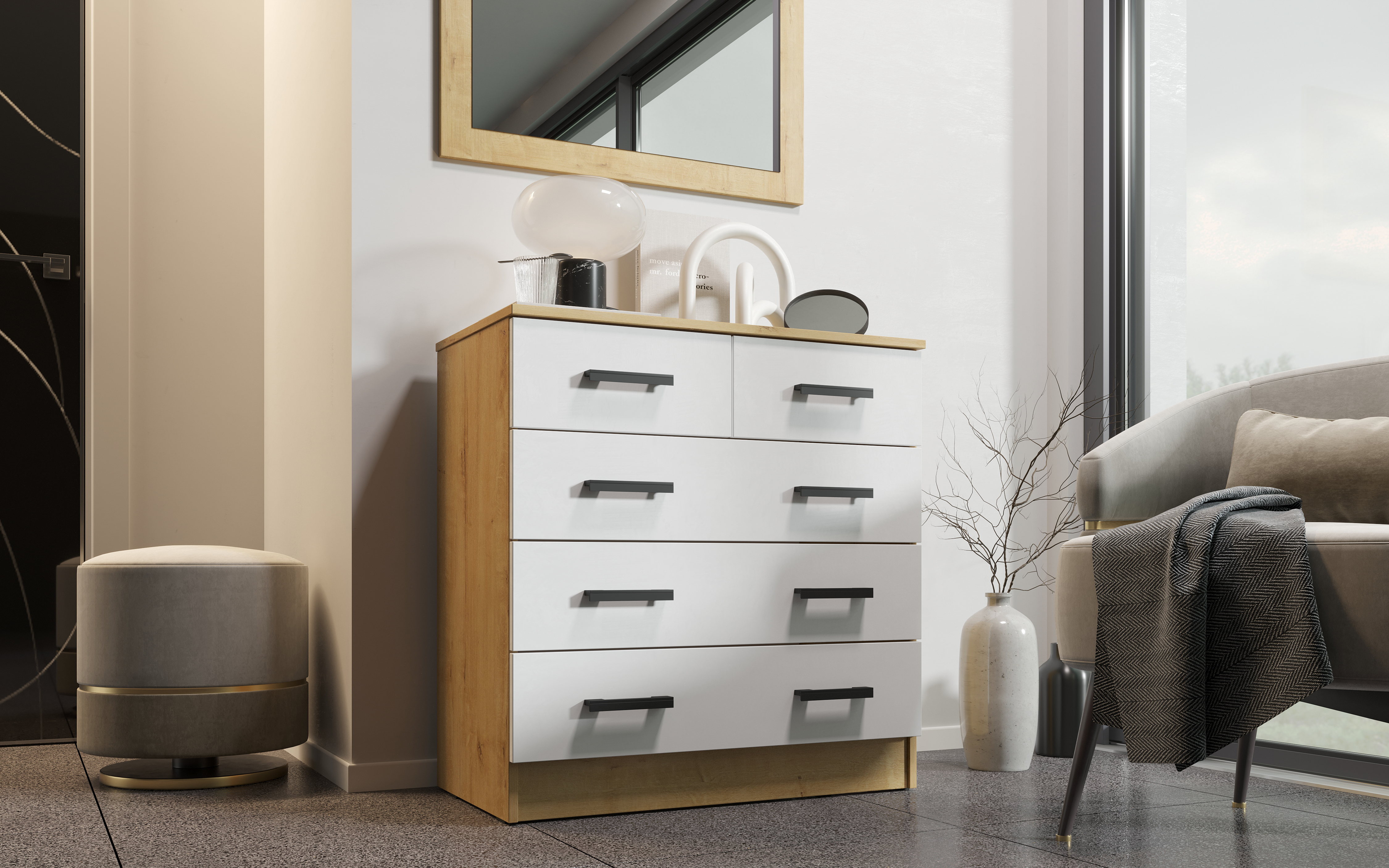 Комод «Стокгольм 4ящ» дуб гранж песочный - железный камень