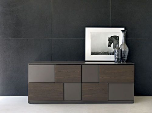 Фасады в сочетании темных оттенков. Отсутствие ручек.