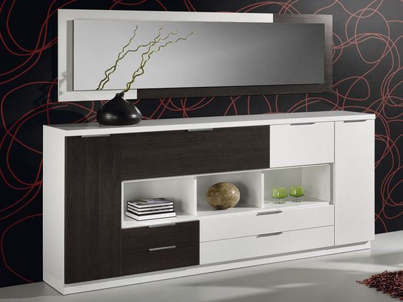 Наличие открытых полок. Сочетание темных и светлых оттенков.