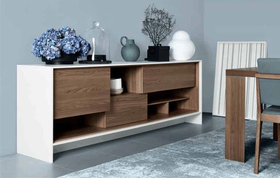 Современный дизайн. Выдвижные полки и распашные шкафчики.