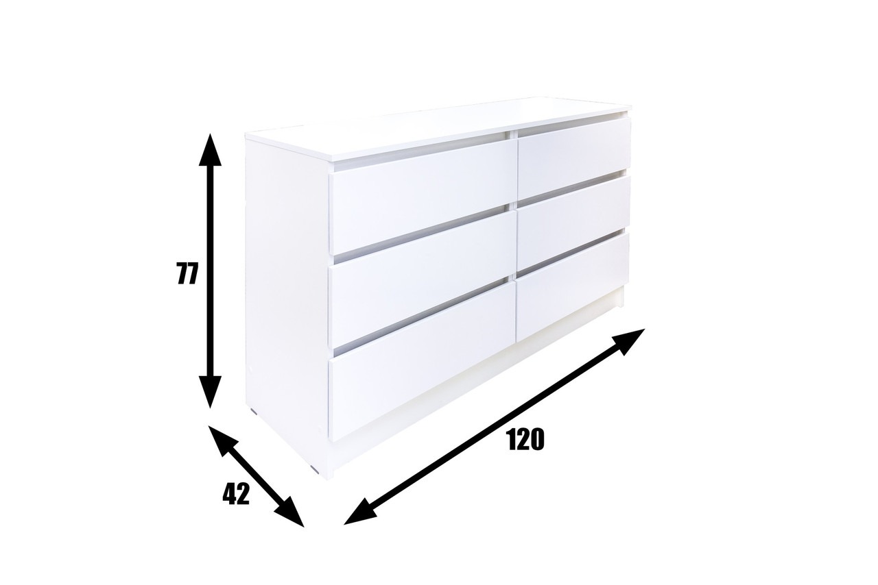 Каждый ящик легко выдвигается, обеспечивая удобный доступ к вашему хранению, а отсутствие ручек добавляет элегантности и минимализма. Белые глянцевые фасады придают комоду современный и свежий вид, который подчеркнет стиль вашего дома.