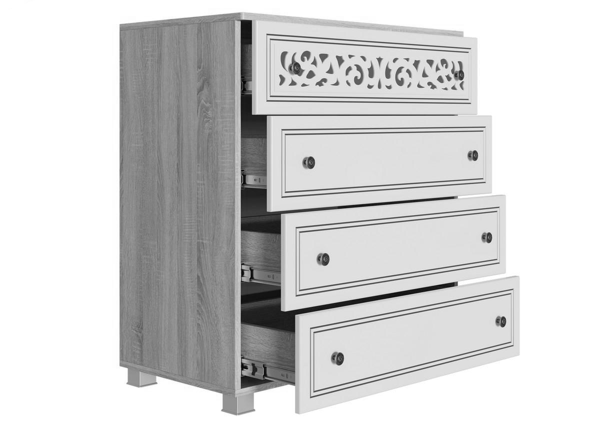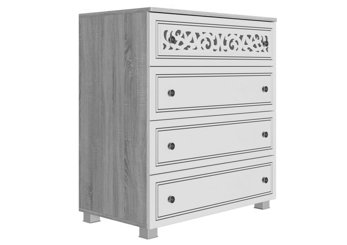 Комод «Мадлен» дуб сонома светлый - ясень белый эмаль с ф/п «серебро»