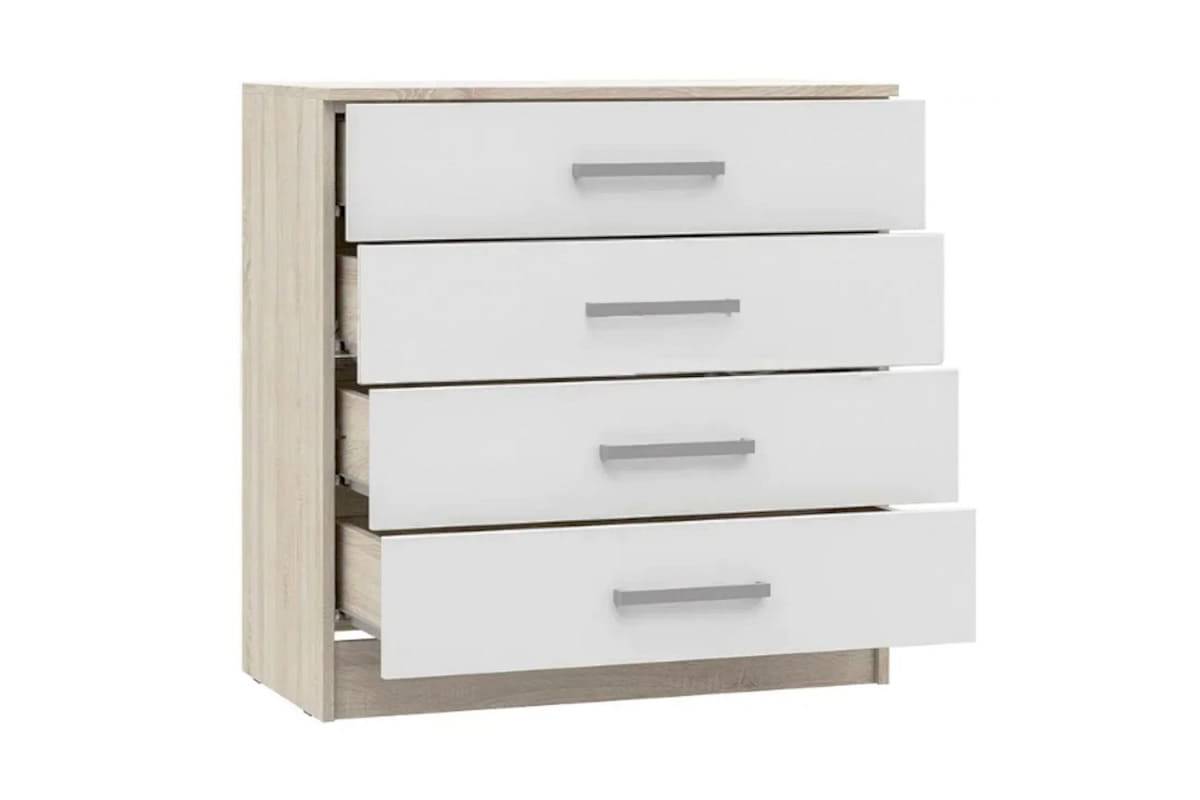 Продуманная конструкция с четырьмя выдвижными ящиками позволяет легко организовать хранение одежды, белья или аксессуаров, обеспечивая порядок в доме.