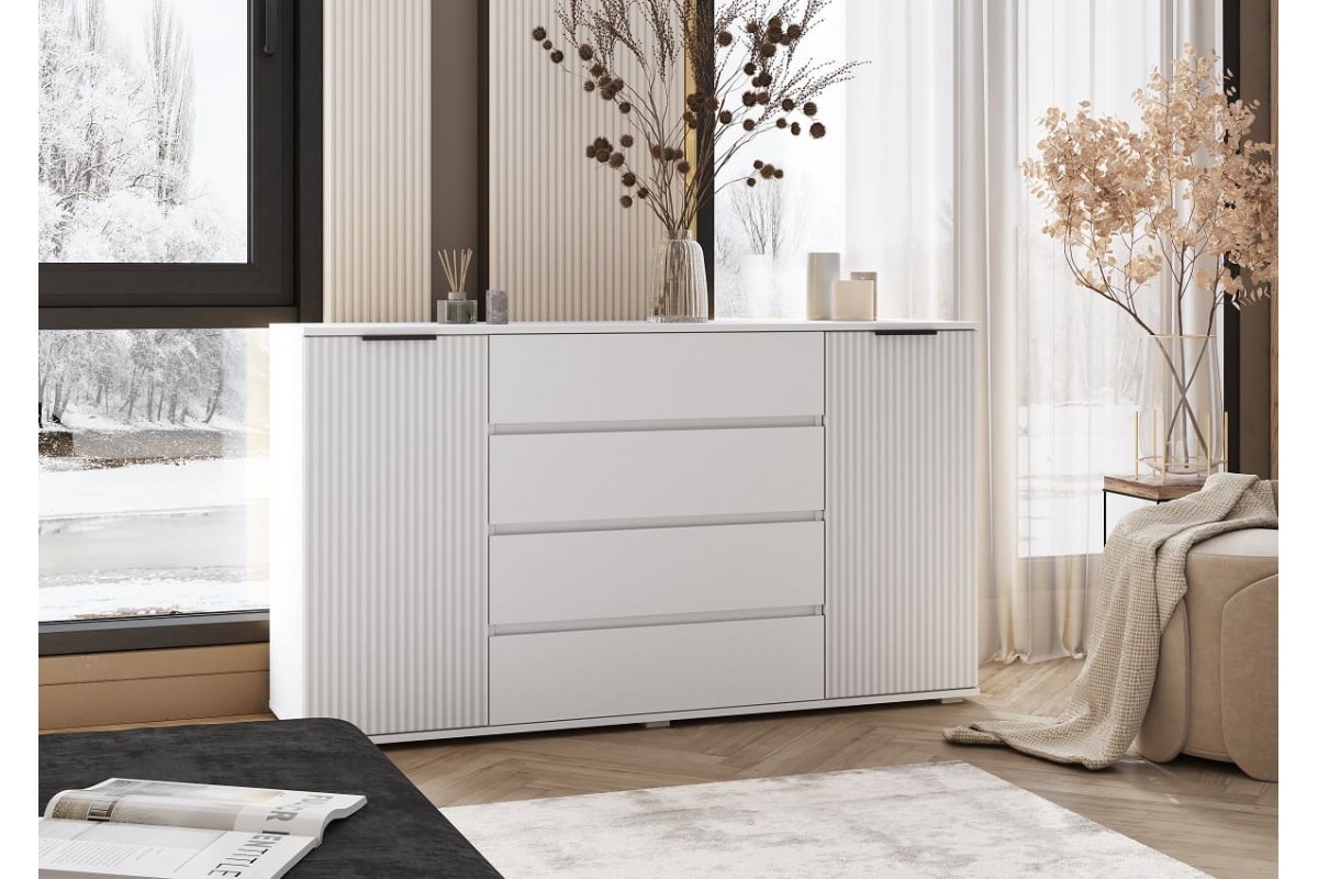 Комод «Марвэл» 2 двери 4 ящика (1600) (Белый - Браш Вайт)
