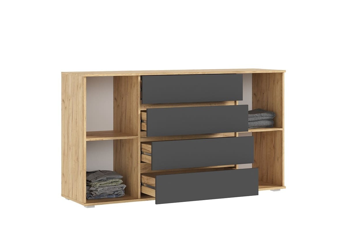 Комод «Марвэл» 2 двери 4 ящика (1600) (Дуб Крафт Золотой - Браш Графит)