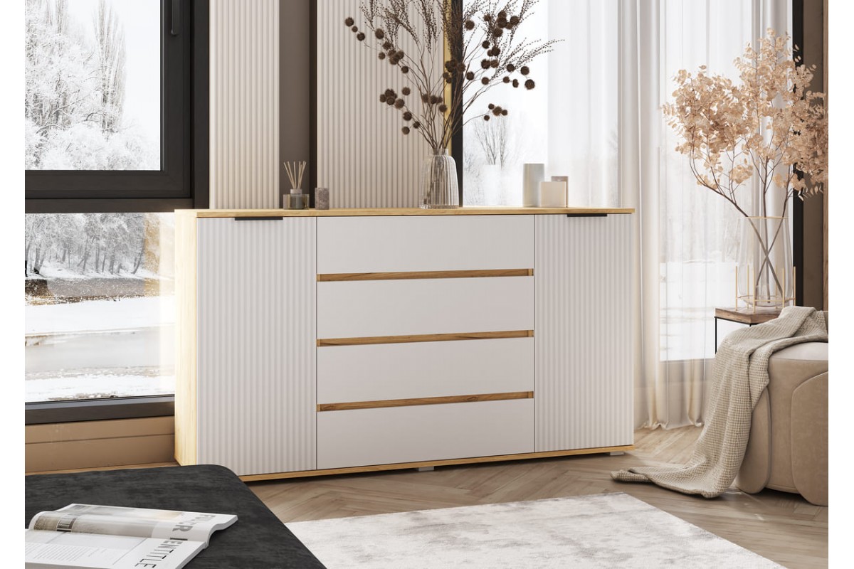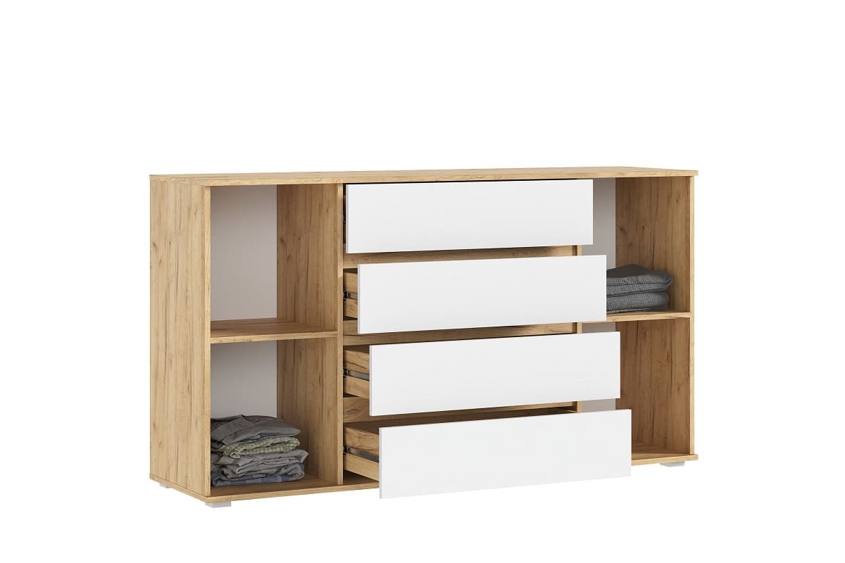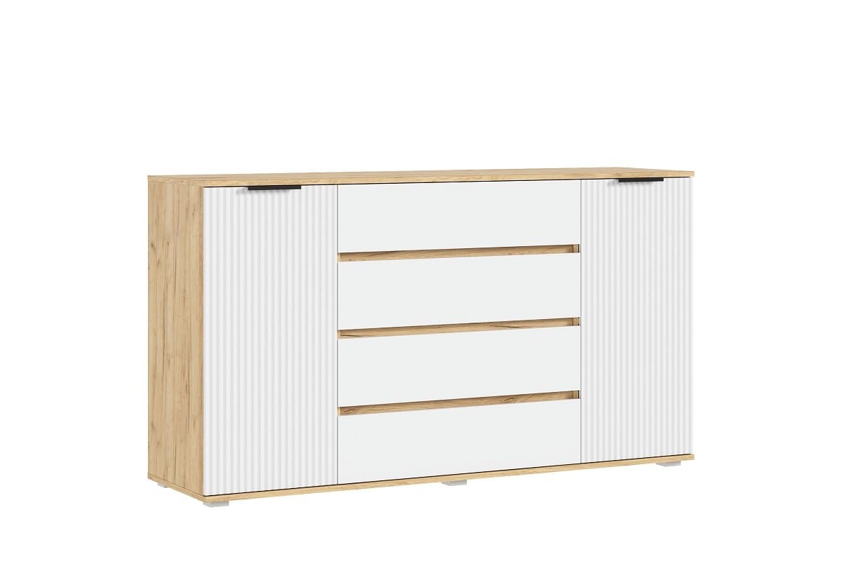 Комод «Марвэл» 2 двери 4 ящика (1600) (Дуб Крафт Золотой - Браш Вайт)
