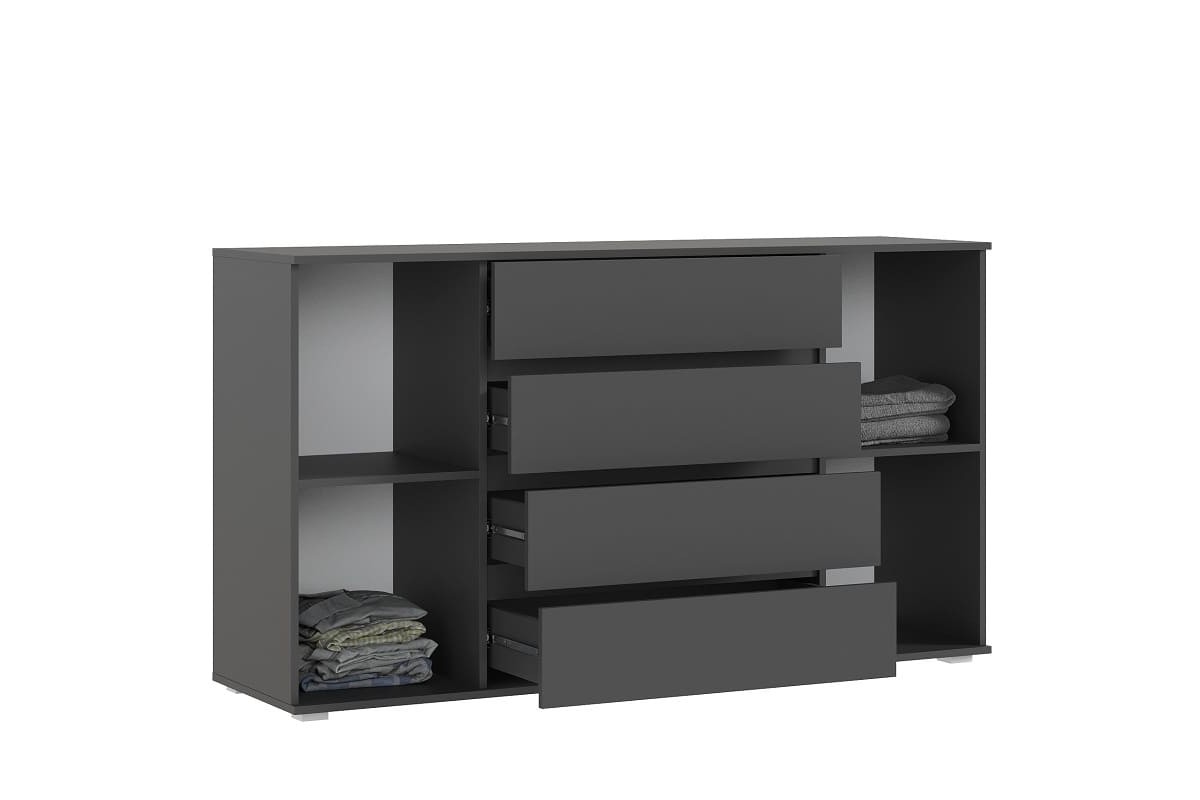 Комод «Марвэл» 2 двери 4 ящика (1600) (Графит - Браш Графит)