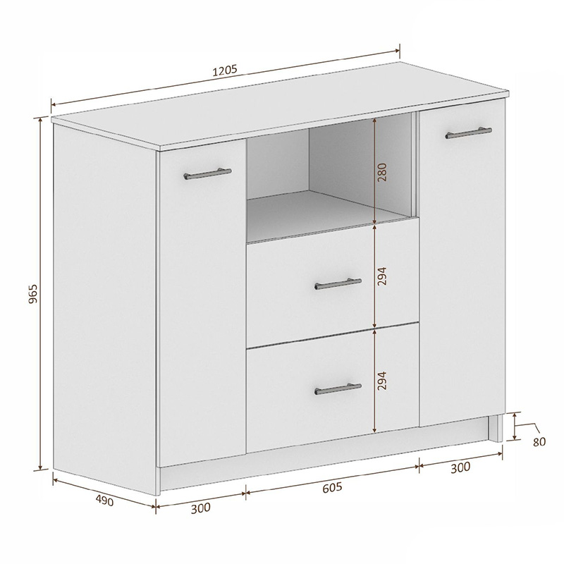 код 115186Открытая ниша, 2 распашных отделения, 2 выдвижных ящика.