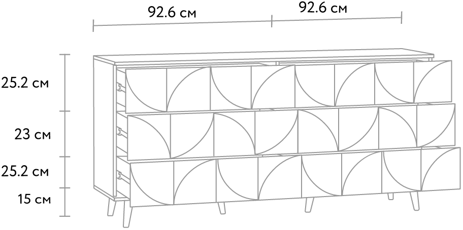 Размер: 80x77x48 см. Три плавно выдвижных ящика.