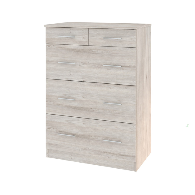 Комод с декором дуба в сером цвете. Конструкция из ЛДСП, шариковые направляющие.