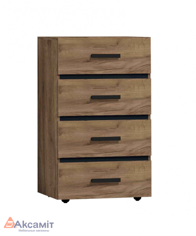 Для спальни отлично подойдет высокий комод Nature 45. Гладкие фасады ящиков в теплом декоре Дуб Табачный Craft с контрастными черными боковыми планками снизу делают его по-настоящему особенным. Четыре выдвижных ящика способны вместить все необходимое, а компактная конструкция сэкономит место в комнате. Ящики легко открываются благодаря направляющим полного выдвижения. Они быстро и легко устанавливаются при сборке комода. Регулируемые опоры компенсируют незначительные неровности пола.
